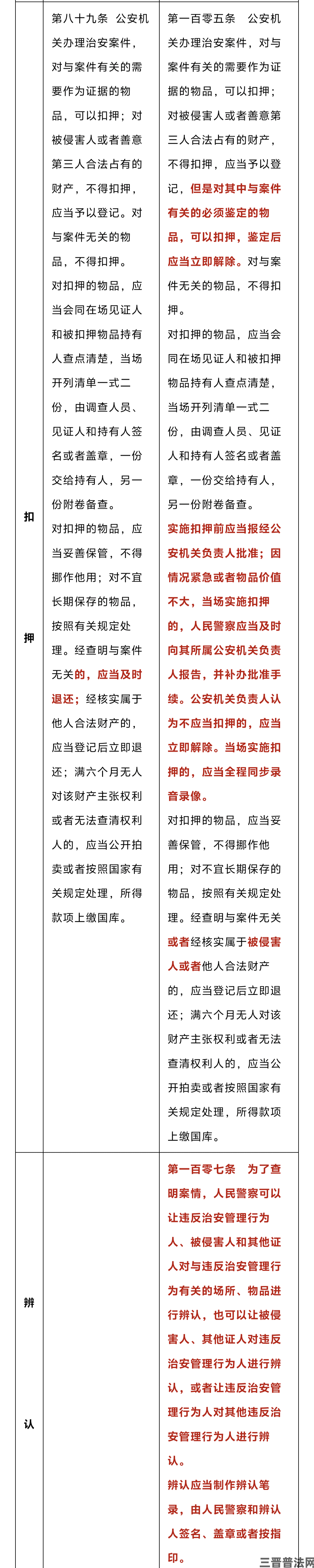 2.其他规定。新法第九十七条至第一百零一条对询问作了规定,第一百零五条对扣押作了规定,第一百零七条对辨认作了规定,人民警察在执法办案场所内开展相关工作,应当严格依照法律的规定进行。