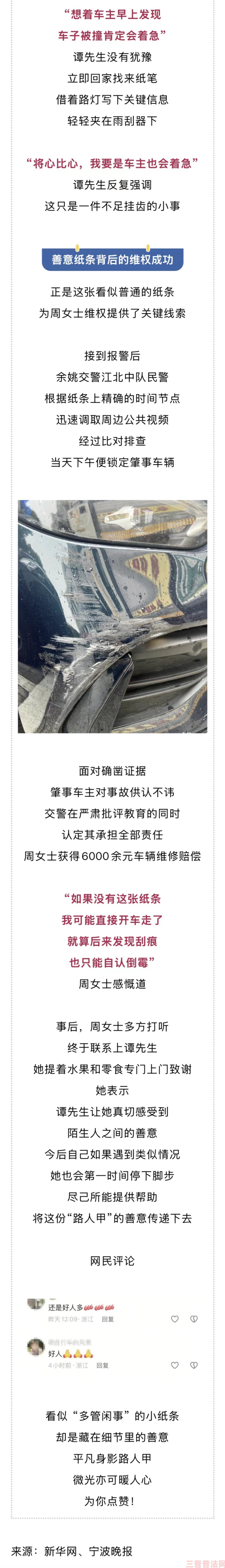 “你的爱车好像被刮了”,路人散步途中“多管闲事”,写下一张小纸条