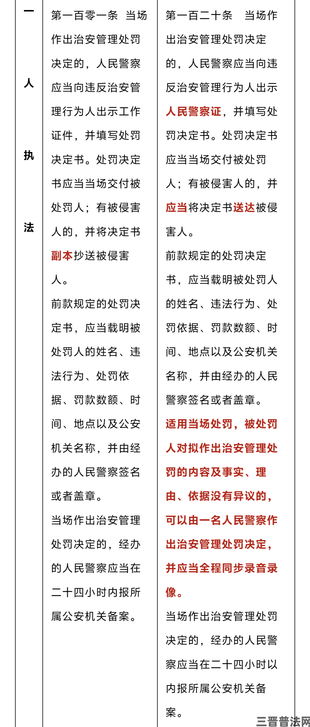 2.相关解读。“一人执法、当场决定”的制度设计旨在提高处理治安案件的效率,人民警察在执行中必须充分保障当事人权利、规范自由裁量权、确保事实认定准确性和执法公正性等方面问题,最大限度地保障当场处罚的公正性和当事人的合法权益,防止该制度在实践中变形走样。