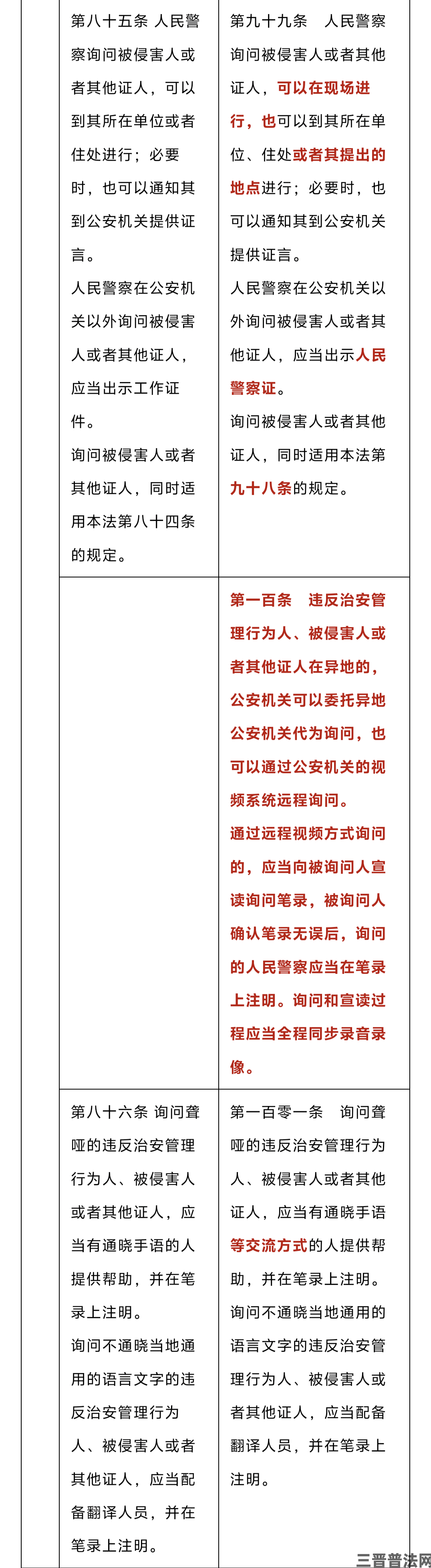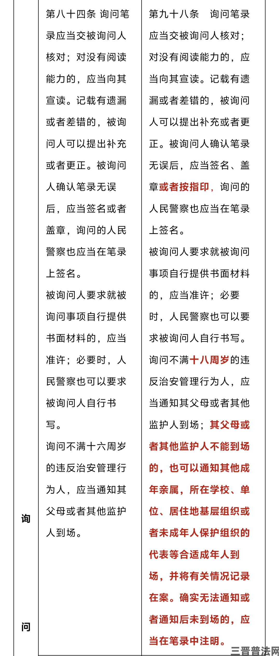 3.相关解读。当前公安机关执法规范化建设取得很大成绩,治安管理工作智能化水平大大提升,在公安机关派出所和内设机构设置的专门办案区域,以及公安机关设置的供两个以上执法办案部门共同使用的执法办案中心并有专人负责管理运行,均配备了录音录像及视频监控设备,相关办案流程和制度比较规范,能够有效防止刑讯逼供等侵害当事人权益行为的发生。