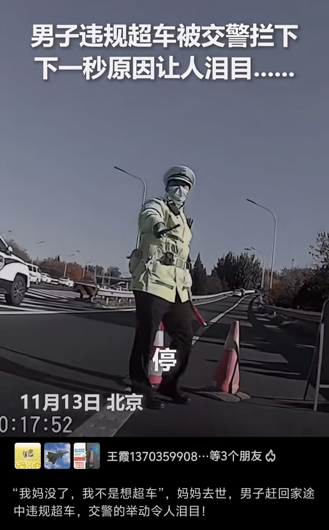 “警官,我妈没了,我回家看我妈去,我是因为着急。”行车记录仪显示,该男子被交警拦下后,拖着哭腔解释。
