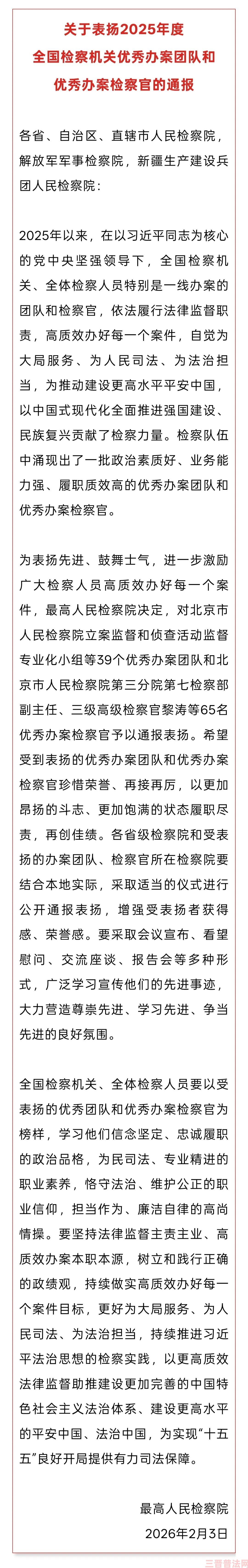 最高检通报表扬!2025年度优秀办案团队和优秀办案检察官名单公布